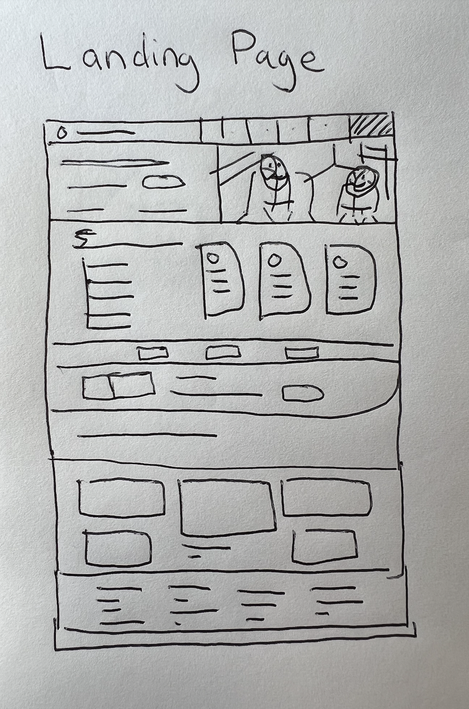 We created the following site map or beginning of a wireframe based on the client’s asks. Documenting and illustrating the elements the client specifically asked for allowed us to to create a road-map for making it higher fidelity while accomplishing all of the client’s needs.